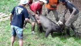 视频中的野猪们,一个个瞪大了眼睛,仿佛在说:“哇,这是什么美味?”它们小心翼翼地靠近哈密瓜,然后用鼻子轻轻嗅了嗅,仿佛在确认这瓜果的“身份”。